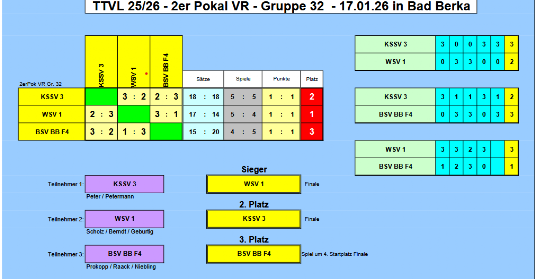 2er Mannschaftsturnier - TTVL Tischtennis Vereinsliga