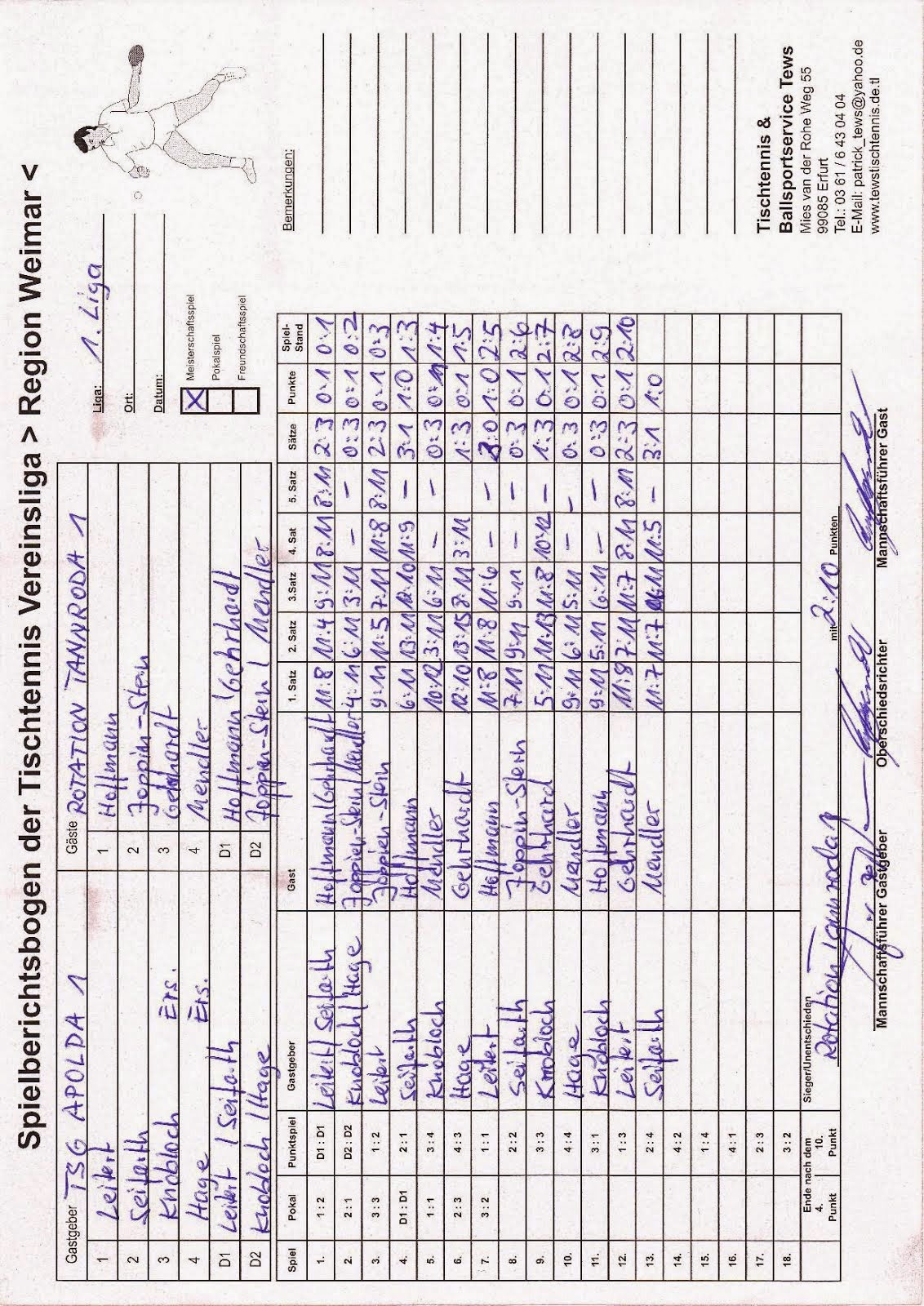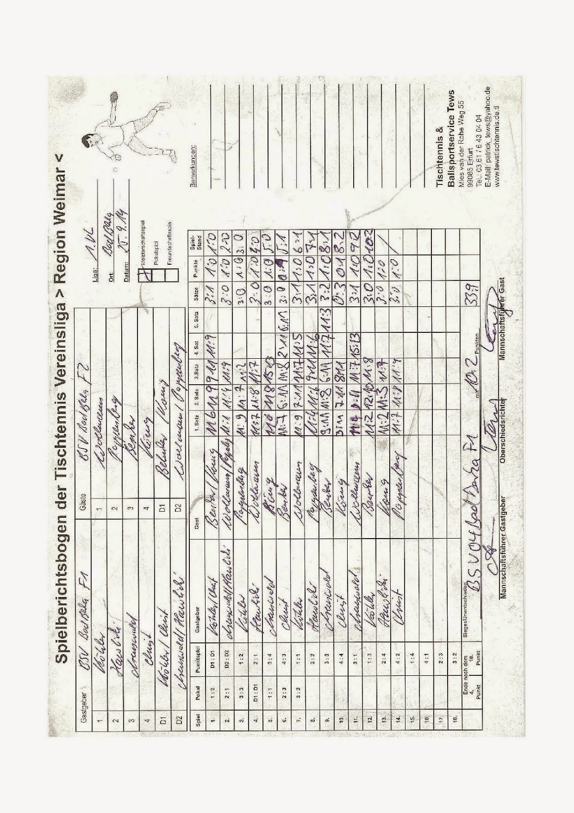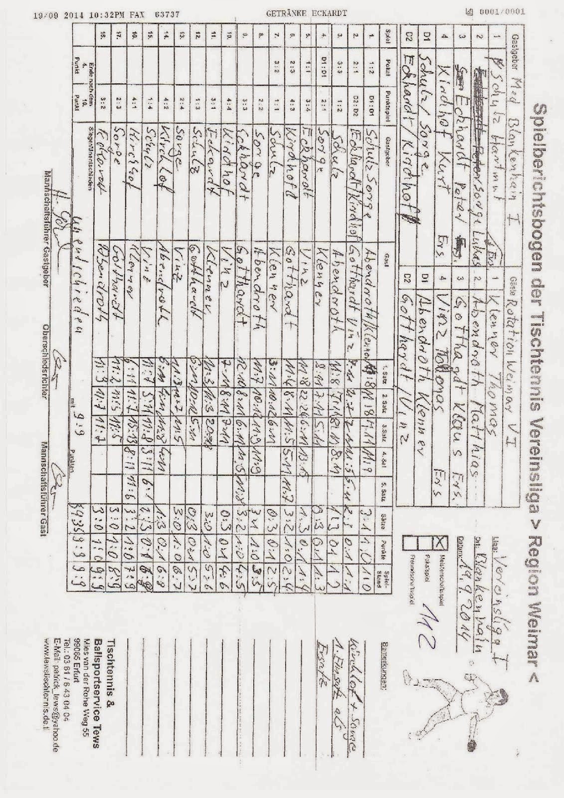+++ Staffel 1 (22.Spieltag): Blankenhain 1 - Bad Berka F1 0:10 +++ Großschwabhausen 1 - Blankenhain 2 10:0 +++ Großschwabhausen 2 - Tannroda 1 1:10 +++ Berlstedt 1 - TTC V1 10:3 +++ WSV 1 - Bad Berka F2 10:7 +++