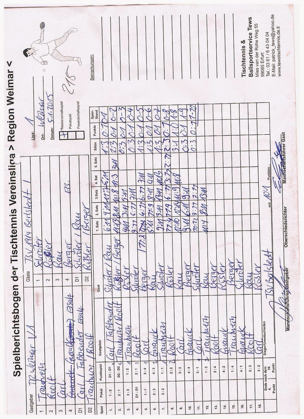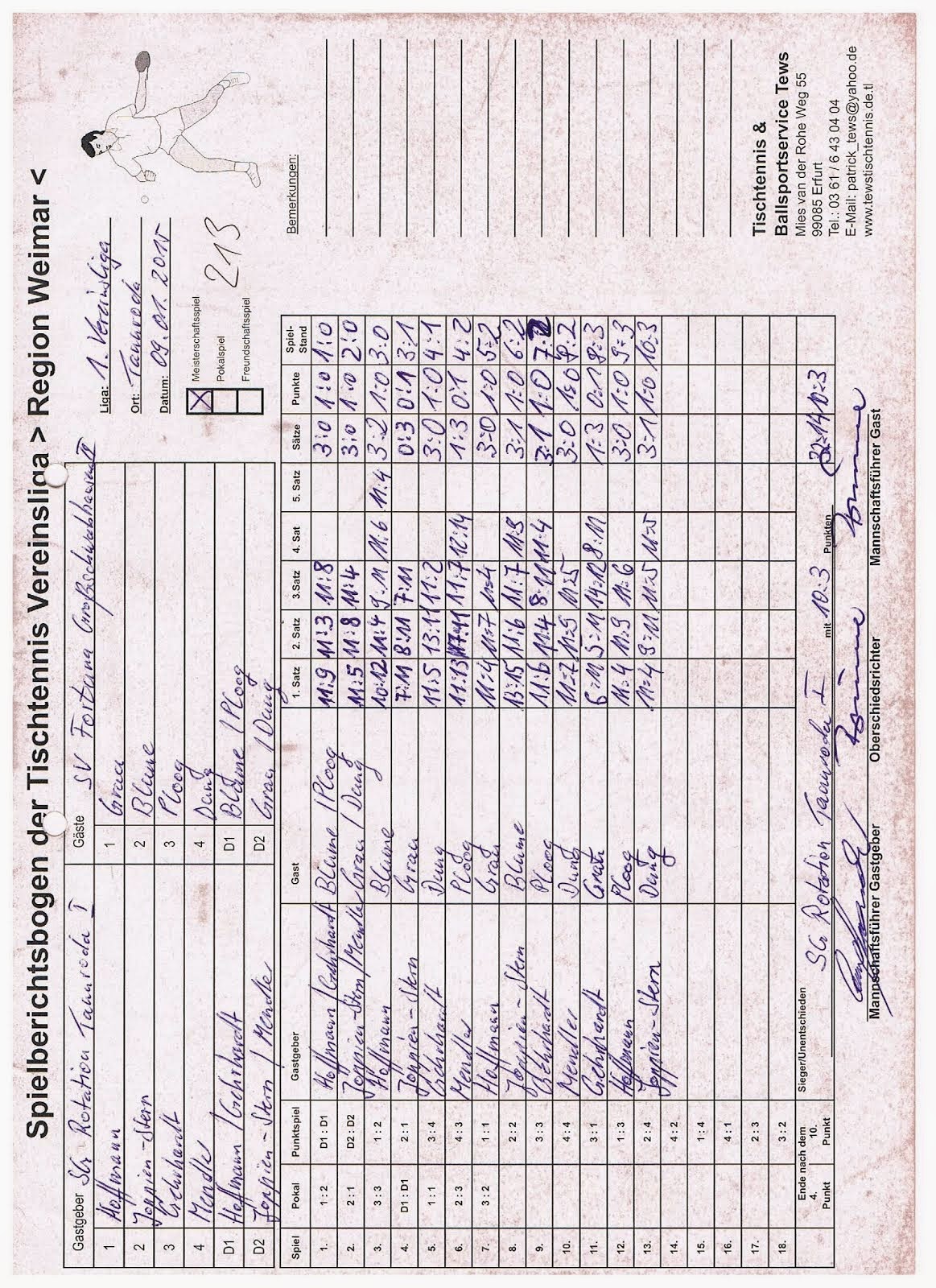 +++ Staffel 1 (22.Spieltag): Blankenhain 1 - Bad Berka F1 0:10 +++ Großschwabhausen 1 - Blankenhain 2 10:0 +++ Großschwabhausen 2 - Tannroda 1 1:10 +++ Berlstedt 1 - TTC V1 10:3 +++ WSV 1 - Bad Berka F2 10:7 +++