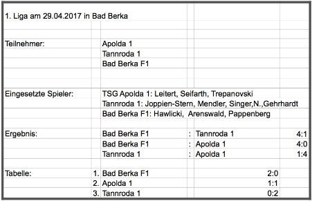 Spielprotokolle sind Uwe Mendler zuzusenden.