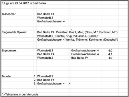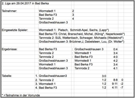 Die Finalrunde für alle Ligen ist für den 29.04.17 (Samstag) in Bad Berka